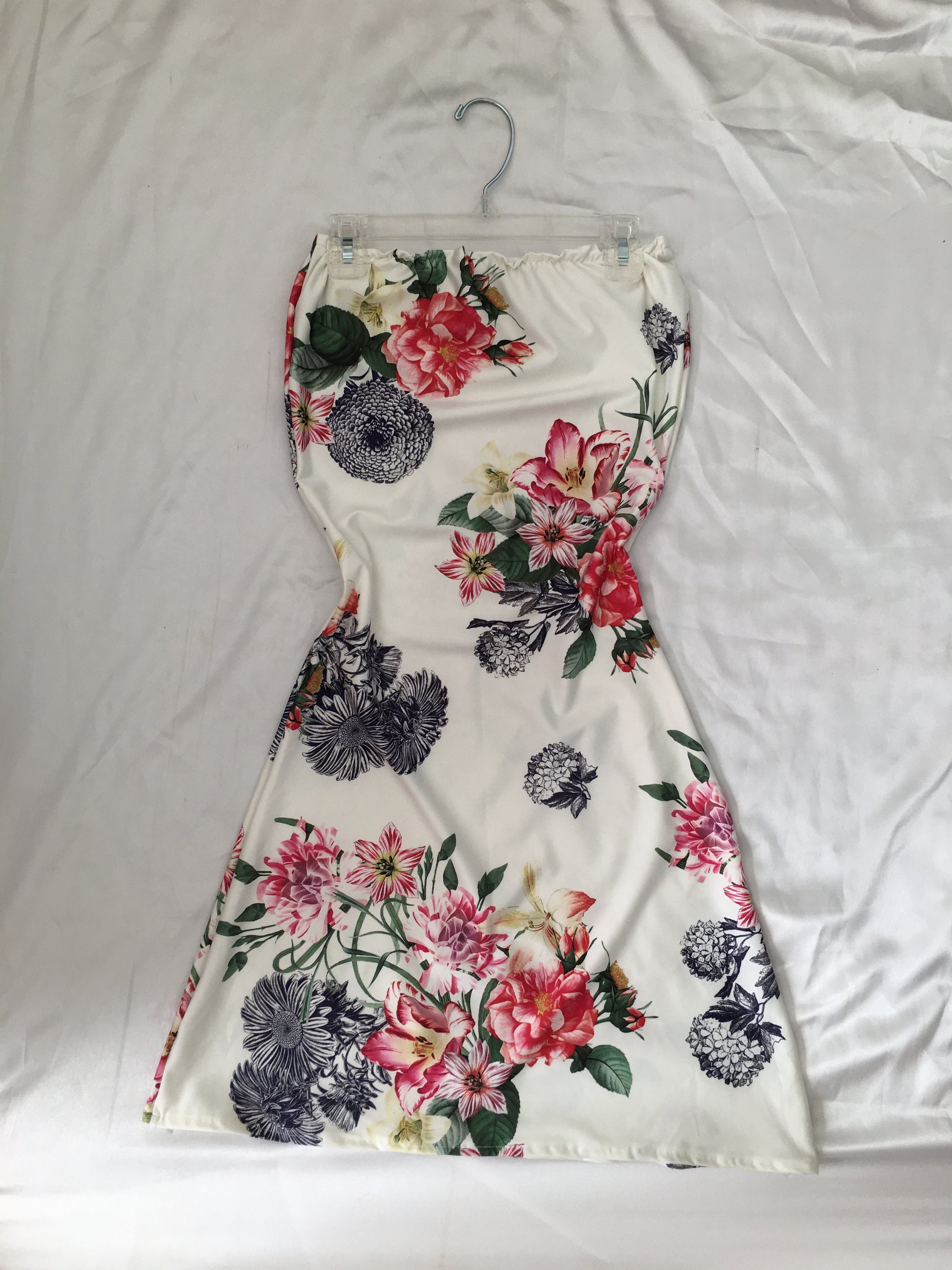 White Flower Tube Top Bodycon Dress